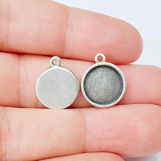 Silver charms pendant bezels are made of antique silver plated nickel free and lead free brass..You can use these blanks on Cabochon bases, Resin b...