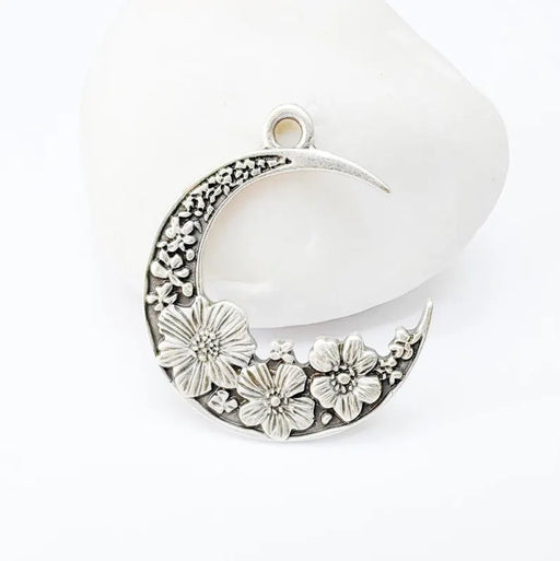 View full detailsCrescent Moon Charm, Flower Celestial Pendant, Antique Silver Plated, Jewelry Making Supplies 33x28mm G37342
