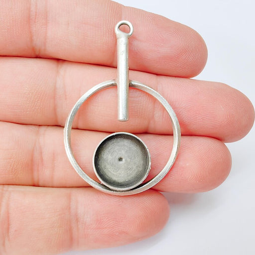 View full detailsGeometric Pendant with 14mm Round Bezel, 45x29mm, Antique Silver Plated Brass, Nickel Free Lead Free, Jewelry Making Supplies, G37444