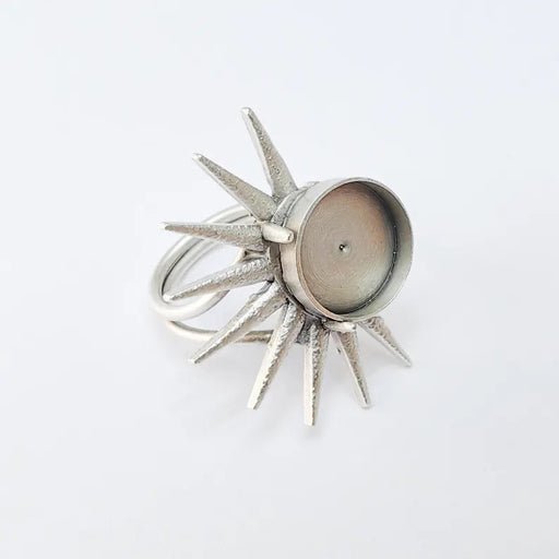 This sunburst adjustable ring base features a striking radial design that adds energy and brilliance to any jewelry creation. The 14mm bezel setti...
