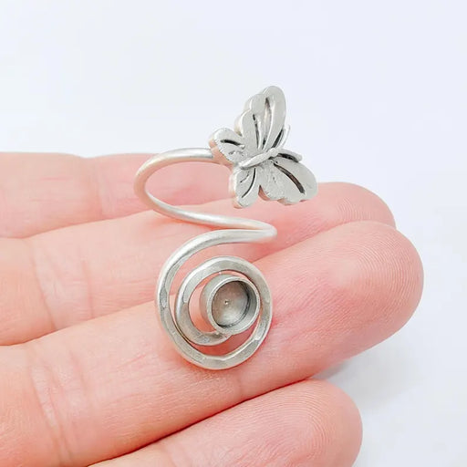 View full detailsAdjustable Spiral Ring Base 8mm Bezel, Boho Swirl Design, Antique Silver Plated Brass Setting, Nickel Free Lead Free G37551