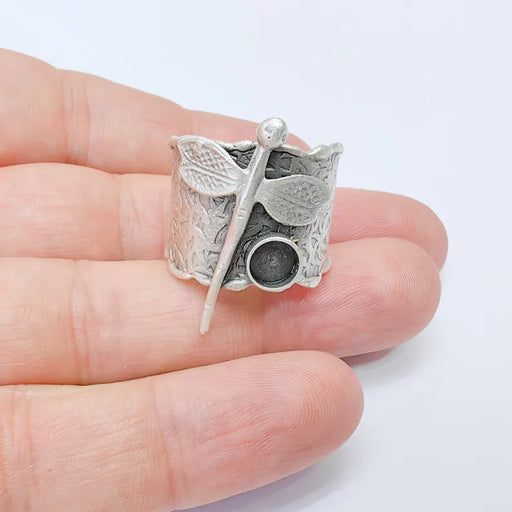 View full detailsDragonfly Adjustable Ring Base, 6mm Bezel Setting for Cabochons and Resin, Antique Silver Plated Brass Jewelry Ring, G37512