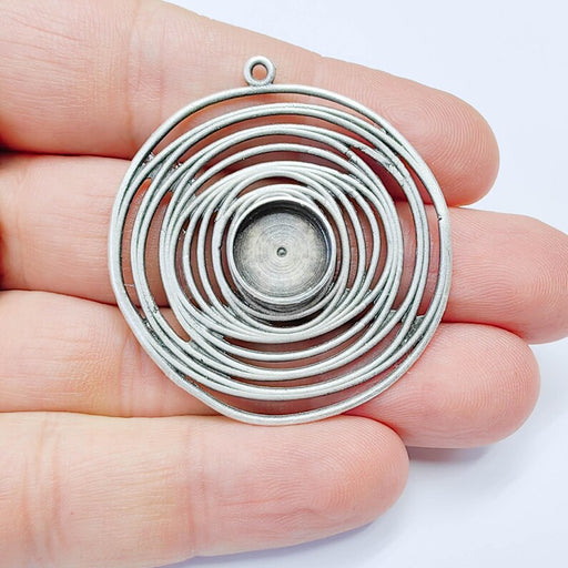 Circular Spiral Pendant Cabochon Setting, Antique Silver Plated Brass, 12mm bezel, 46x44mm G37579