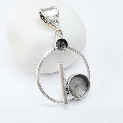 View full detailsPendant Bezel Setting, Geometric 12mm and 6mm Bezel Cups, Antique Silver Brass, 39x30mm, G37585