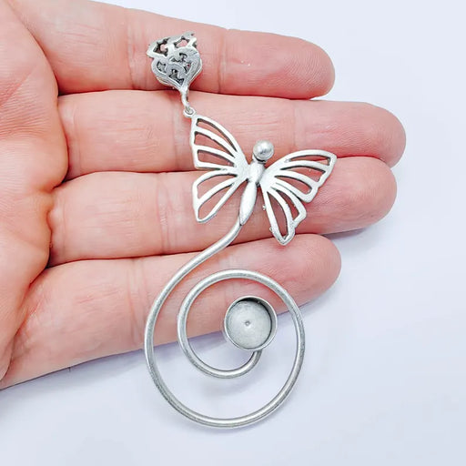 View full detailsButterfly Spiral Pendant with 10mm Bezel, Artistic Swirl Design Jewelry Connector, 85x33mm G37581