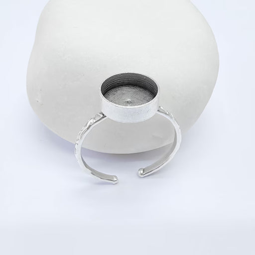 View full detailsAdjustable Ring Base with Round Bezel, Textured Band, Antique Silver Plated Brass, 10mm, G37803