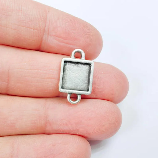 View full details2 Square Bezel Connector, Double Loop Cabochon Blank, Antique Silver Plated 10x10mm G37903