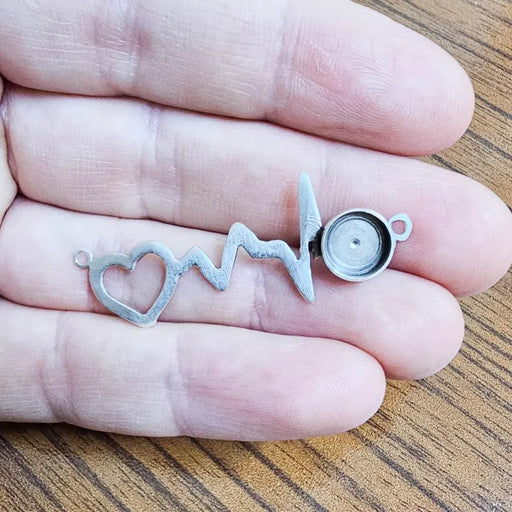 View full detailsHeartbeat Bezel Connector Pendant, Heart ECG Design, Antique Silver Plated, 8mm, G37869