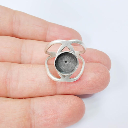 View full detailsAntique Silver Adjustable Ring Base, 10mm Round Bezel Setting, Modern Open Band, G37894