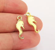 10 Shiny Gold Seahorse (Double Sided) Charms 24k Shiny Gold Charms (21x8mm) G22341
