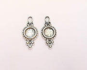 10 Silver Charms Blank Bezel Resin Bezel Mosaic Mountings Antique Silver Plated Charms (27x12mm)( 8 mm Bezel Inner Size) G22081