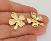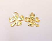 2 Clover Charms Shiny Gold Plated Charms (26x21mm) G22540