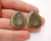 2 Drop Charms Antique Bronze Plated Charms (34x27mm) G21358