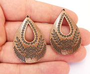 2 Drop Flower Charms Antique Copper Plated Charms (42x28mm) G22786