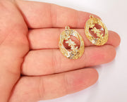 2 Flower Charms 24k Shiny Gold Plated Charms (30x21mm) G22971