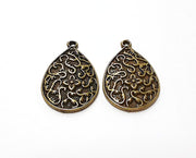 2 Flower Drop Charms Antique Bronze Plated Charms (33x22mm) G21693