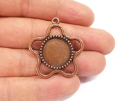 2 Flower frame pendant blank Antique copper plated pendant (37x35mm) (18mm Blank Size) G24503