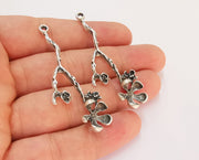 2 Flowers Charms Antique Silver Plated Charms (60x22mm) G22438