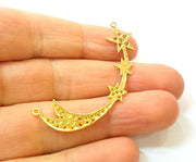 2 Gold Charms Gold Plated Star Charms 24K Gold Plated Brass (54x21mm) G7420