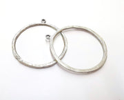 2 Hammered Circle Silver Pendant Antique Silver Plated Pendant (57x50mm) G24100