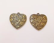 2 Heart Charms Double Sided Antique Bronze Plated Charms (23x22mm) G22455