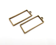 2 Rectangle Bezel Charms Antique Bronze Plated Charms (47x19mm) G21420