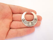 2 Silver Charms Antique Silver Plated Charms (41x40mm) (Cabochon base size 10x8mm oval) G22268