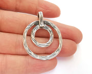 2 Silver (Double Sided) Charms Antique Silver Plated Charms (43x34mm) G20630