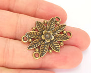 4 Bronze Flower Connector Charms Antique Bronze Plated Charms (34x27mm) G22538