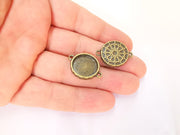 4 Charms Connector Blank Bezel Resin Bezel Mosaic Mountings Antique Bronze Plated Charms (27x19mm)( 17 mm Bezel Inner Size) G22984