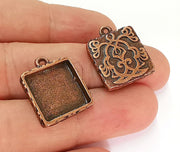4 Flower Blank Bezel Resin Bezel Mosaic Mountings Antique Copper Plated Charms (22x17mm)( 15x15 mm Bezel Inner Size) G21978