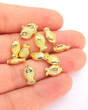 5 Shiny Gold Fish (Double Sided) Charms 24k Shiny Gold Charms (12x7mm) G22366