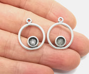 6 Silver Pendant Bezel Blank Earring Component Antique Silver Plated Blanks (6mm Blank) G8633