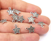 10 Star charms Antique silver plated charms (14x12mm) G25425