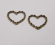 4 Twisted wire shape heart charms Antique bronze plated charms (33x27mm) G25255
