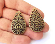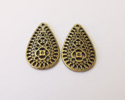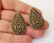 2 Drop filigree charms Antique bronze plated charms (38x23mm) G25341