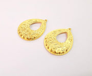 2 Drop Flower Connector Charms with ten holes Gol Plated Charms (43x32mm) G24661