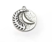 Fern Leaf Charms Crescent Hammered Disc Pendant Antique Silver Plated Plated (29x25mm) G28132