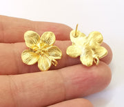 Flower Earring Stud Base Gold Plated Brass Earring 1 pair (24x22mm) G24951