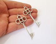 2 Key Pendant Antique Silver Plated Charms (67x28mm) G24751