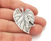 Leaf charm with Triangle dangle cup bezel blank Antique silver plated brass charm (45x33mm) G25935