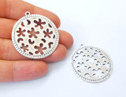 2 Flower Charms Antique Silver Plated Charms (44x40mm) G24927