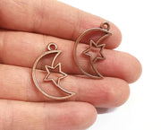 5 Crescent star charms Antique copper plated charms (30x19mm) G24328