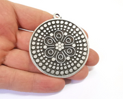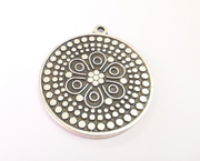 Flower round pendant Antique silver plated pendant (63x57mm) G24408