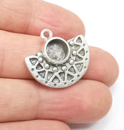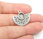 Antique Silver Charms Pendant Bezel, Resin Blank, inlay Mounting, Mosaic Frame Cabochon Base, Antique Silver Plated (8mm) G29153