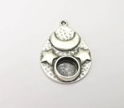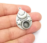 Moon and Star Pendant Bezel, Resin Blank, inlay Mounting, Mosaic Frame Cabochon Base Dry Flower Setting, Antique Silver Plated (10mm) G28566