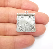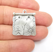 Silver Dangle Charms, Boho Sun Charms, Rustic Charms, Earring Charms, Silver Pendant, Necklace Parts, Antique Silver Plated 26x25mm G35174