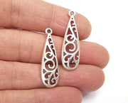 Drop Filigree Charms Antique Silver Plated