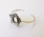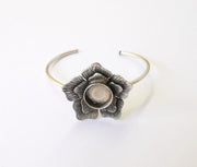Flower Bracelet Brass Cuff Blank Bezel Glass Cabochon Base Adjustable Antique Silver (14mm ) G24947