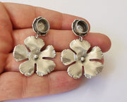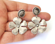 Flower dangle earring Stud Base Earring posts Antique silver plated brass earring bezel blank settings 1 pair (10mm blank) G25336